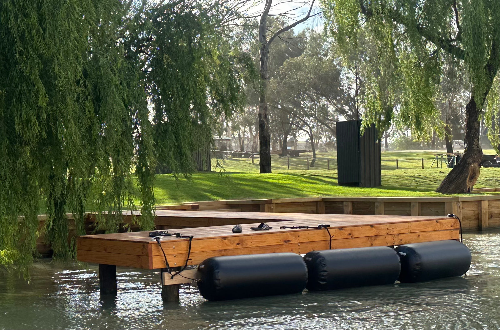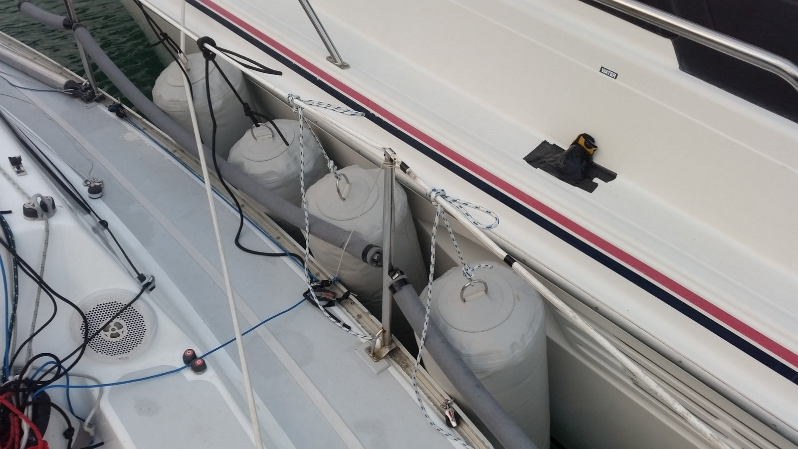 I needed a bigger fender to better support the mid section of our boat. The fender is mounted horizontally on the side of the jetty.